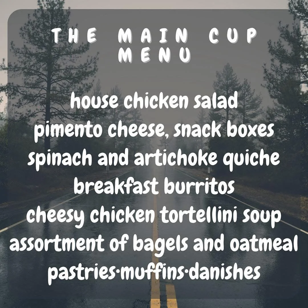 The Main Cup celebrated its 6th anniversary in 2024. It's a wonderful place to catch up with friends, meet new people, enjoy coffee, hot chocolate, lattes, etc. as well as partake in soup, sandwiches and other goodies.