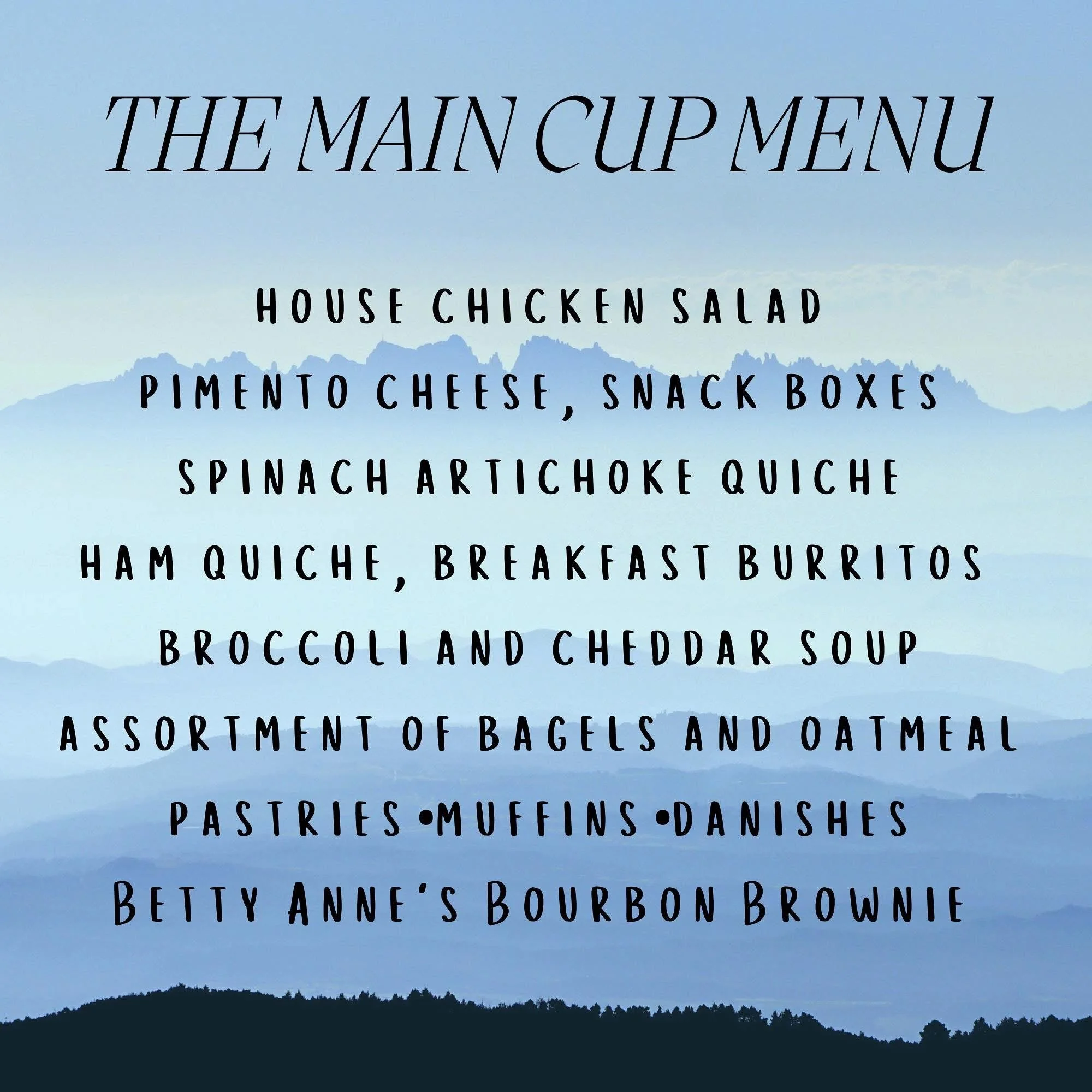 The Main Cup celebrated its 6th anniversary in 2024. It's a wonderful place to catch up with friends, meet new people, enjoy coffee, hot chocolate, lattes, etc. as well as partake in soup, sandwiches and other goodies.