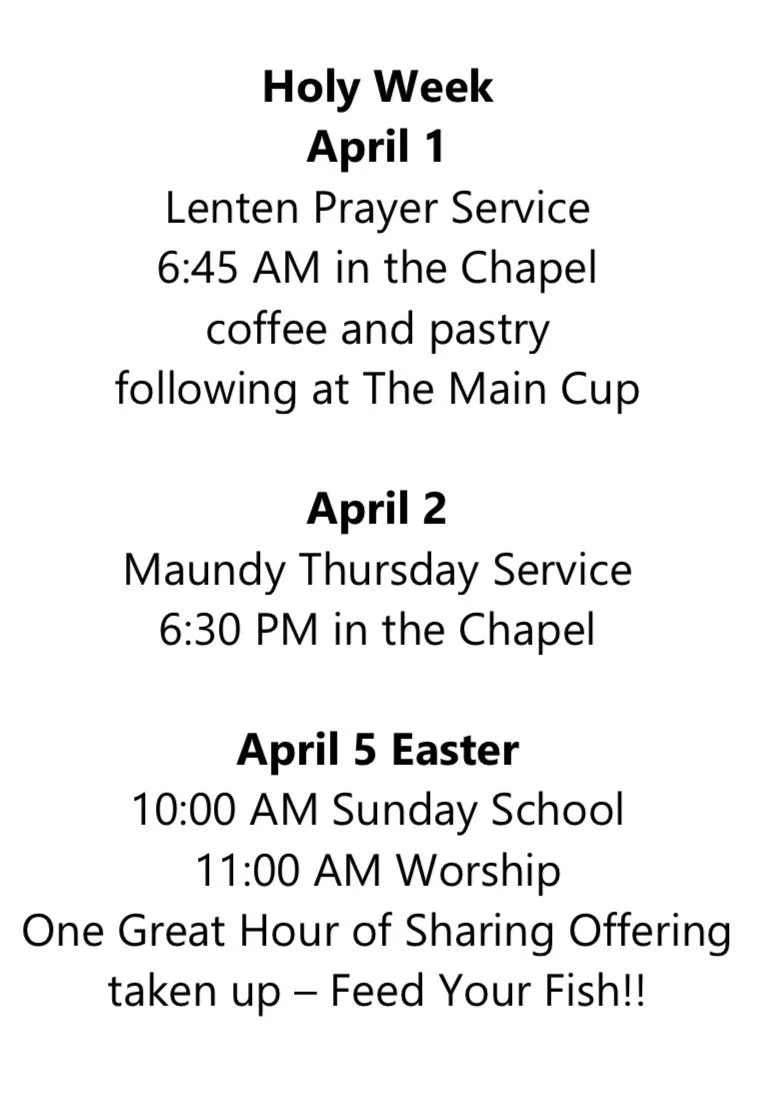 Please join us for worship at 11 AM preceded by Sunday School at 10 AM.