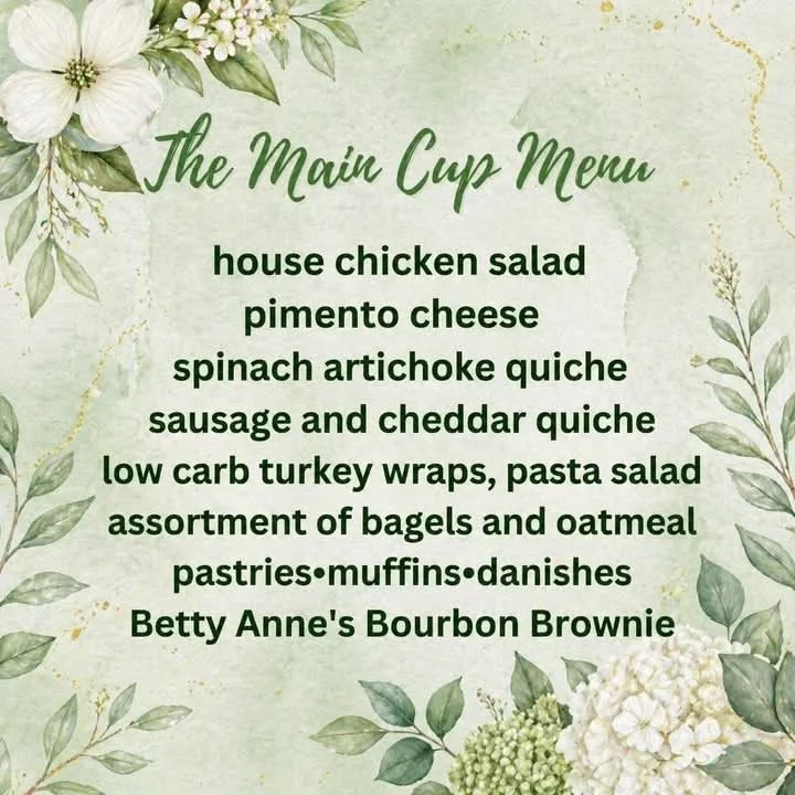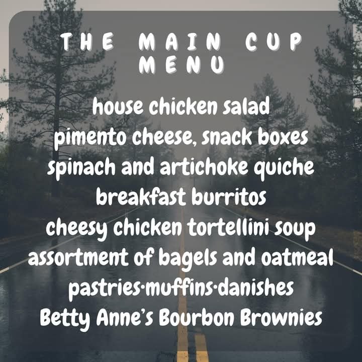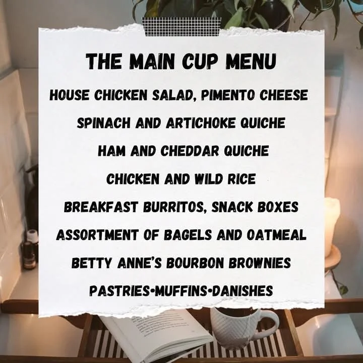 The Main Cup celebrated its 7th anniversary in 2025. It's a wonderful place to catch up with friends, meet new people, enjoy coffee, hot chocolate, lattes, etc. as well as partake in soup, sandwiches and other goodies.
